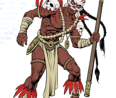 Jasiri the Brave was a legendary warrior among his tribe, renowned for his unmatched skill in combat and his ability in poisons through his blow dart gun and natural weapons. Tales of his victories over the greatest warriors of old spread far and wide, with whispers of his triumph over a giant that shook the very earth. But Jasiri's prowess extended beyond the battlefield, as he was also a revered witch doctor who wielded the forces of nature and mystic arts to his advantage. With a deep understanding of both natural science and magical properties, his reputation as a warrior and healer unmatched in the annals of history.